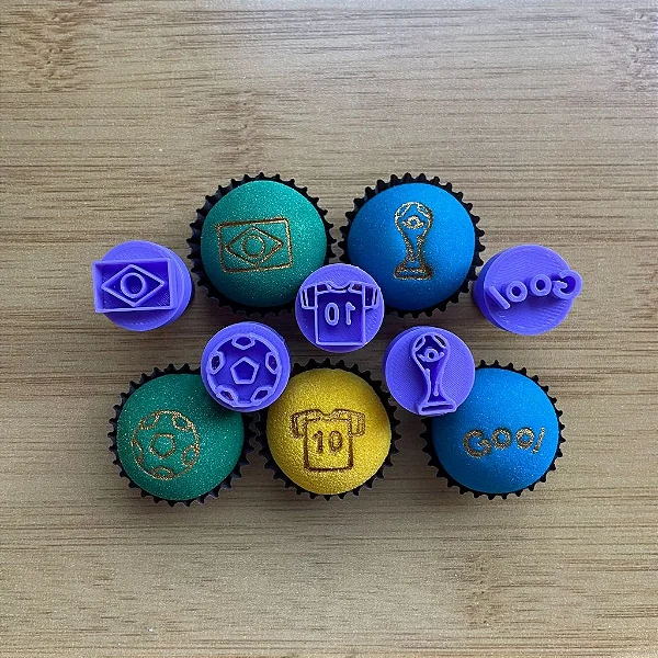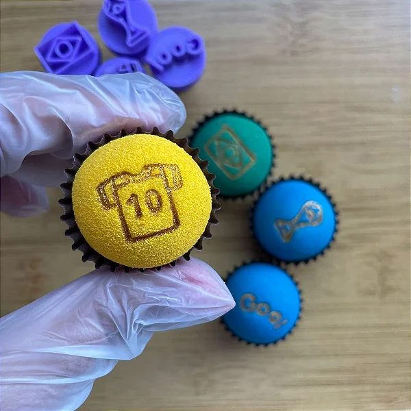 Kit contém 5 pçs de carimbos decorativos para docinhos e brigadeiros temático copa do mundo