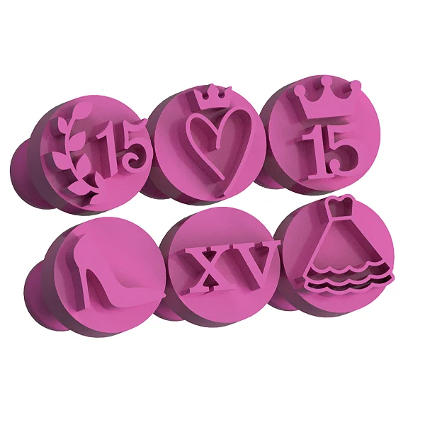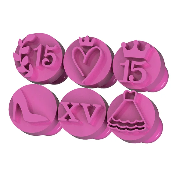 Kit contém 6pcs de carimbos para docinhos e brigadeiros 15 anos