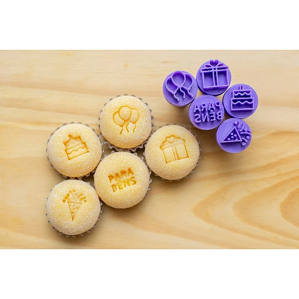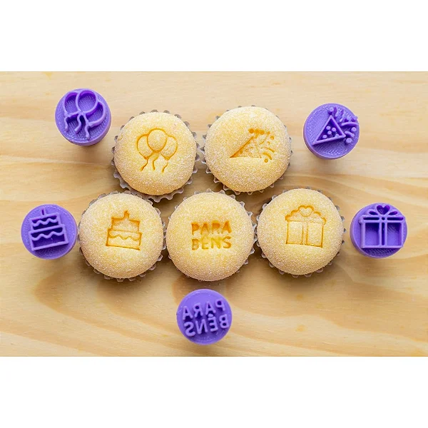 Kit contém 5 pcs de carimbos para docinhos brigadeiros aniversário